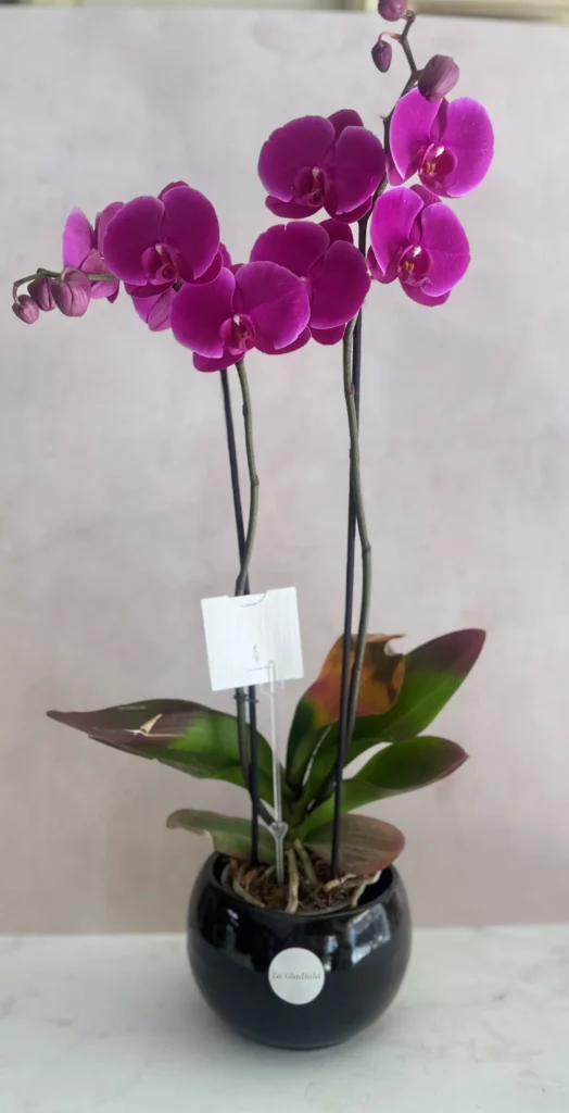 Orquídea morada en base de cerámica