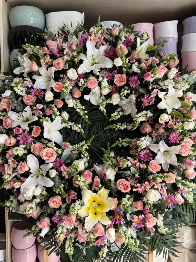 Tipo de flor: lilis, rosas, perritos, margarita y astromelia.